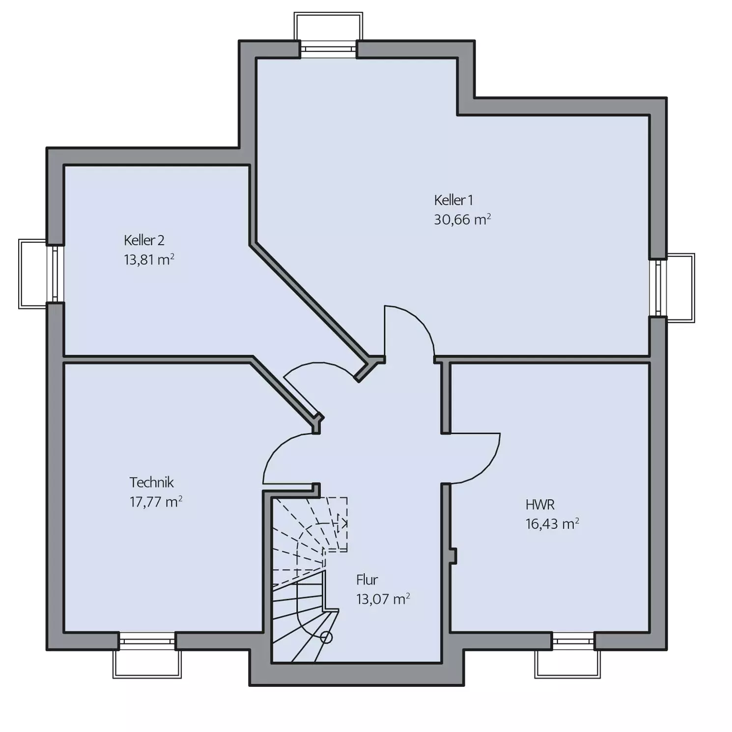 Alle dargestellten Flächen und Flächenberechnungen zu Wohnflächen (kurz WF) und Grundflächen (kurz GF) wurden gemäß der Verordnung zur Berechnung der Wohnfläche (Wohnflächenverordnung – Wo FlV) vom 25. November 2003 (BgBl. I S. 2346) ermittelt.