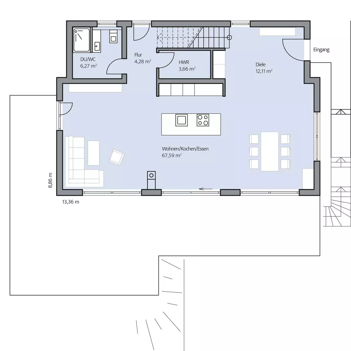 • Außenmaß13,36 m